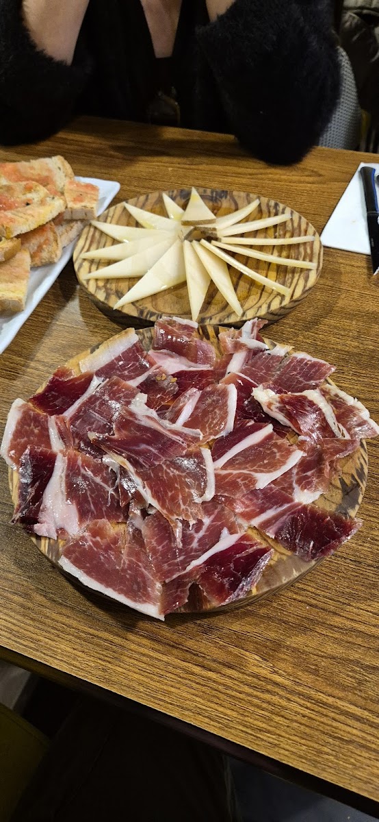 I went there with some family members for a caña (small tap beer). They give you a tapa (small plate). The quality of the tapas are ok and big enough. They gave us bread with serrano ham and cheese with the first caña and meatballs with french fries and bread with the second one. We decided to eat dinner. Some ordered a hamburger that was average. I ordered pluma ibérica and shared it with my sister. There were two pieces of meat, french fries and vegetables. Everything was really good. I even think that the french fries were fresh (different from the ones they give you with the tapas). I have no complains about the meat and sides. They were really good. They also served some aioli but that wasn't good. Well, I didn't liked it. It was kind of sweet and flavorless apart of the very strong garlic flavor. Service was good in general. My brother in law pay for it so I really can't comment about the prices. The only price I remember is the pluma. It was €18. I think a very reasonable price and good quality meat and sides. In general it was a good experience.